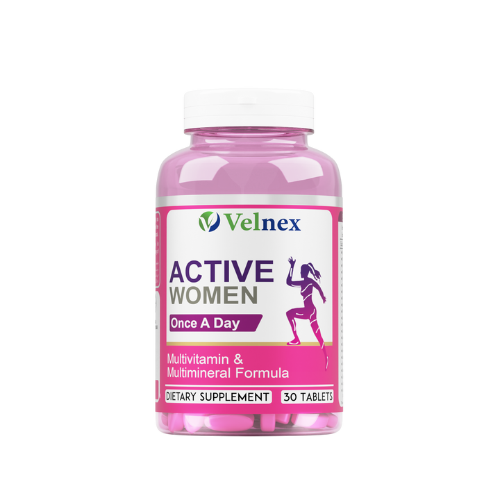 Active Women is a specially formulated multivitamin designed to support women’s overall health, energy, and beauty. Enriched with essential vitamins and minerals, it helps improve skin, hair, and nail strength, supports bone and immune health, and boosts energy and metabolism for an active lifestyle.
